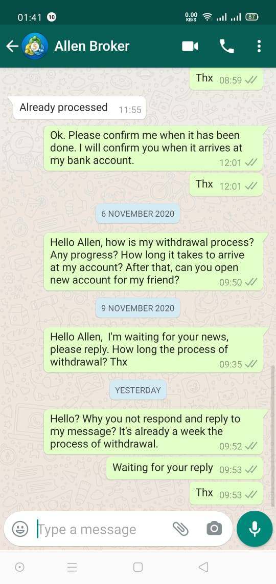 Chinese man flirting with me and made story that he love with me. Asking to follow trading with him. at first he made profit for me and i tried to withdraw. the withdrawl was successful and the process only need 1-2 days. One day he made me broke and asking for more deposite. After deposite again, he tried to made me broke again with cheated platform at backstage, but I learn to trading myself and get profit now, but now i can't withdraw my money, they didn't reply my message.