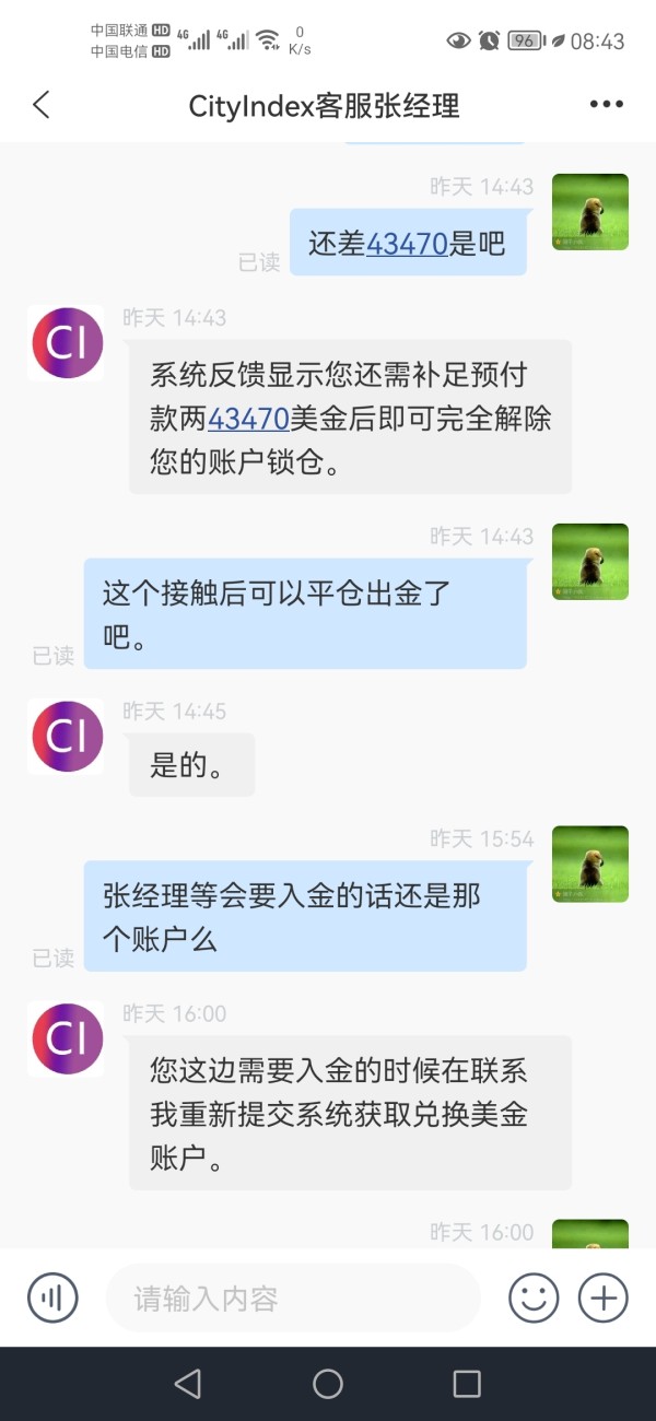 Le compte a été modifié de manière malveillante par l'arrière-plan de la plate-forme et deux ordres de couverture importants sont apparus, ce qui a entraîné le verrouillage du compte. Le responsable du service client Zhang a déclaré qu'il devait payer une marge pour fermer la position et retirer de l'argent. Maintenant, le compte officiel du site Web a également été bloqué. Celui qui a contacté le responsable du service client Zhang Le logiciel APP a également été contraint d'annuler le compte.