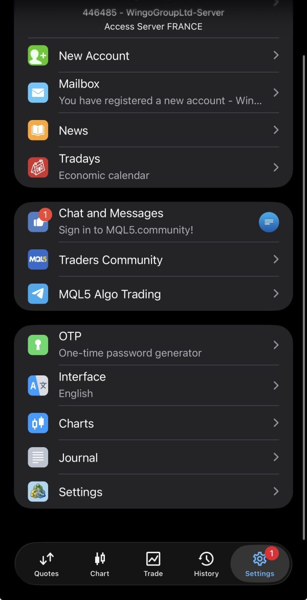 WINGOは、トレーダーにメタトレーダー5という、Metaquotesが設計した最新のプラットフォームへのアクセスを提供しています。これには、市場の動きを全体的に把握するための21のタイムフレーム、6つのペンディングオーダータイプのサポート、ヘッジとネッティングの両方の柔軟性が含まれています。さらに、エキスパートアドバイザー(EA)のためのマルチスレッド戦略テスターも備えています。