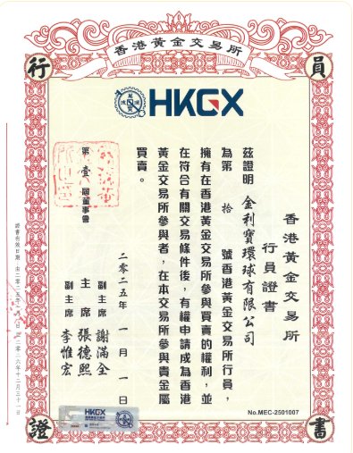 ゴールドラベルグローバルリミテッド は、によって規制されています。 香港ゴールド取引所 以下に 貴金属取引(AGN) 中国香港でのライセンス(番号010)。この認可により、会社は事業を実施することが許可されます 貴金属取引活動、主に金市場の取引に関連するものです。