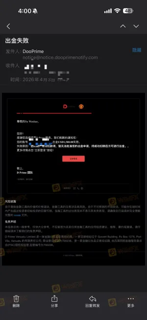 D prime 수익을 창출한 후 출금 신청을 했으나 출금이 불가능함