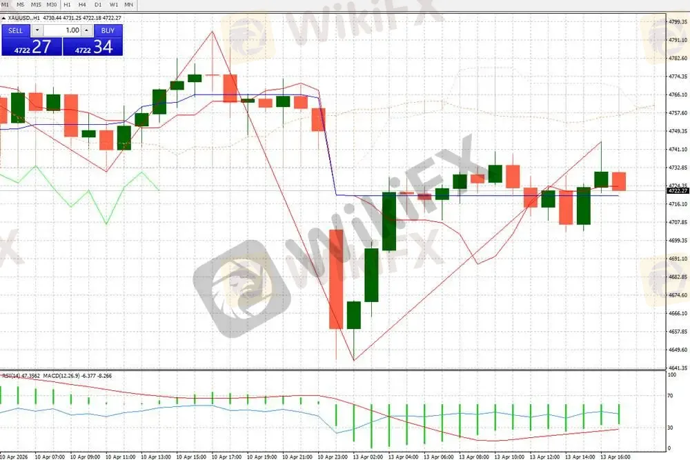今日现货黄金(XAU/USD)走出先抑后扬、剧烈震荡的行情:亚盘时段受中东局势与通胀预期的双重冲击,金价大幅下挫,最低触及4664.12美元/盎司,单日最大跌幅超2%,完全回吐上周全部涨幅;随后在欧盘时段逐步企稳反弹,截至1小时图收盘,价格回升至4722.27美元/盎司,日内最终收涨1.13%,报4723.69美元/盎司,呈现典型的V型反转走势。