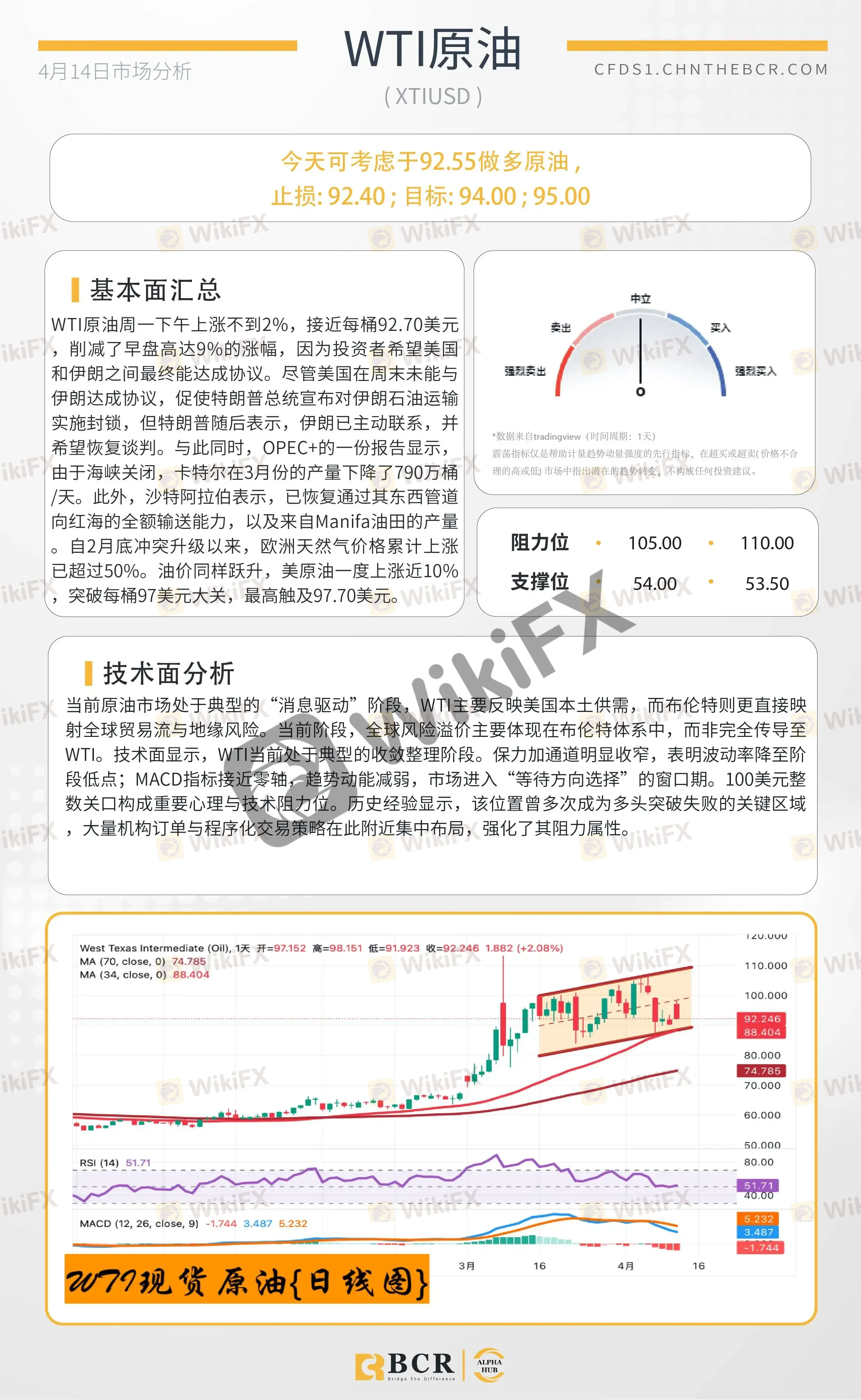 BCR每日早评及分析 - 2026年4月14日