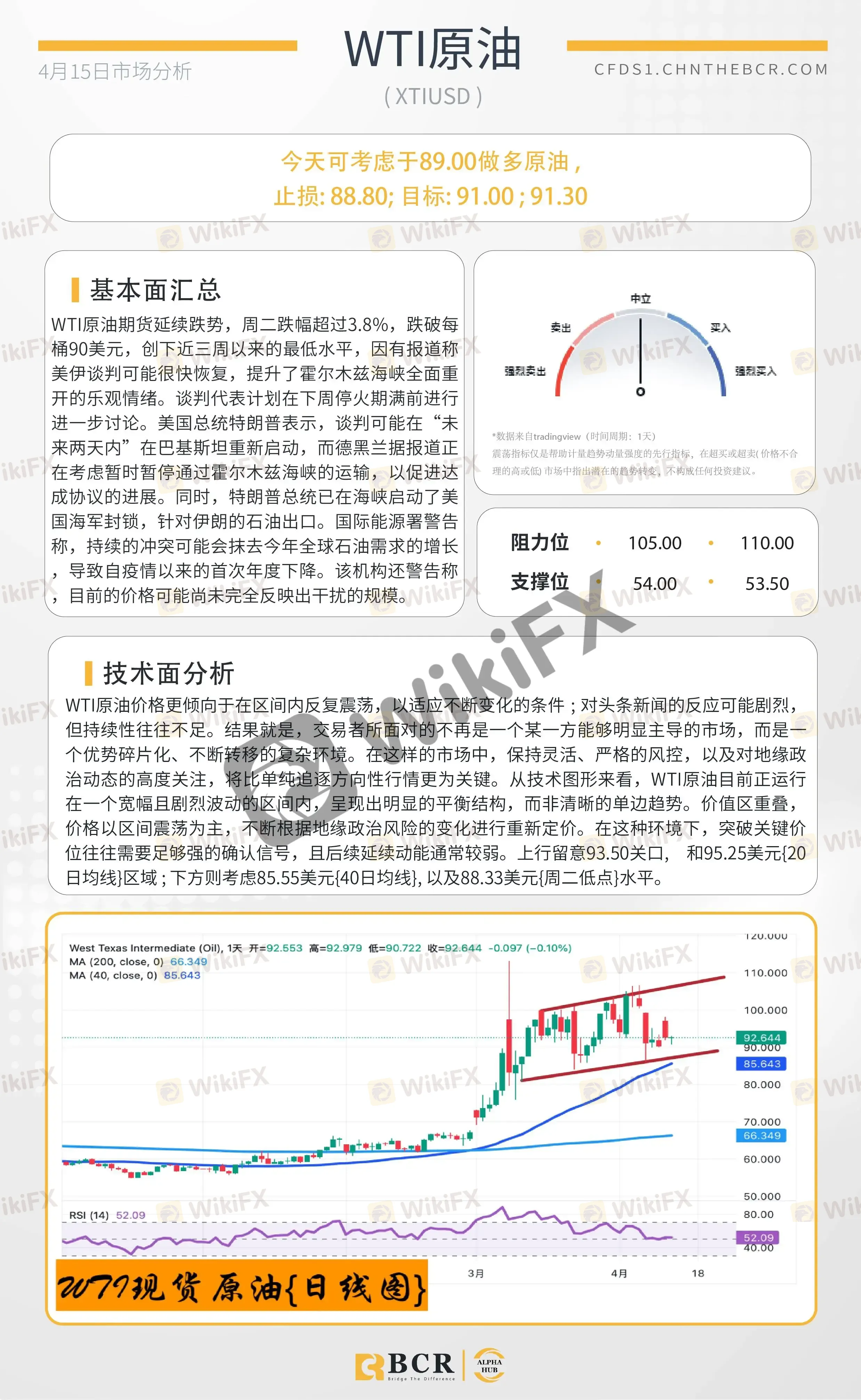 BCR每日早评及分析 - 2026年4月15日