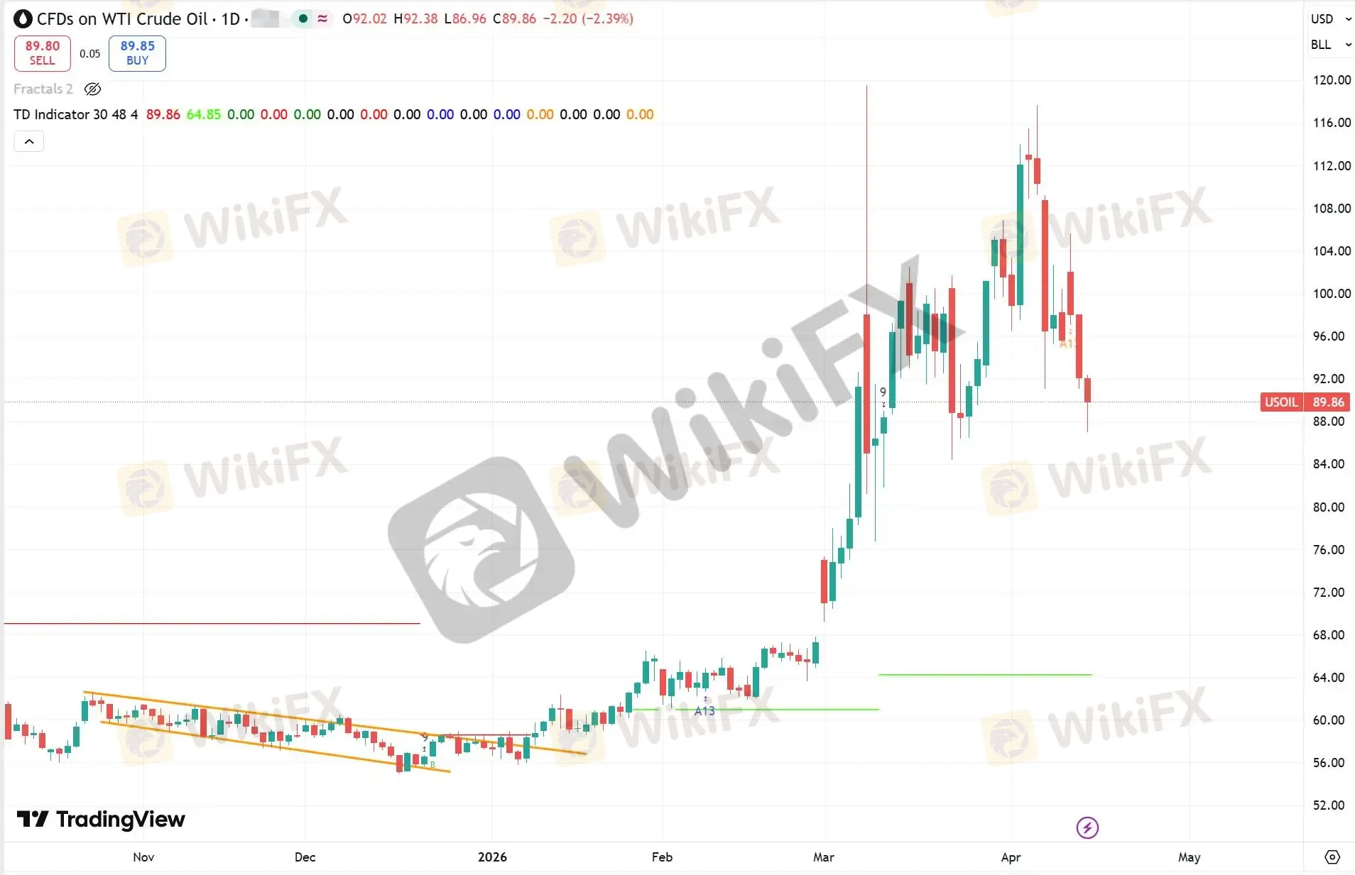 在特朗普宣称未来两天可能会与伊朗进行新一轮谈判之后,油价连续第四个交易日下跌,盘中跌破90美元。不过目前确切的时间和谈判地点还在商议之中,并不能完全排除变数的可能性。在市场一片乐观情绪的背景下,突然的消息反转可能会使得投资者措手不及。