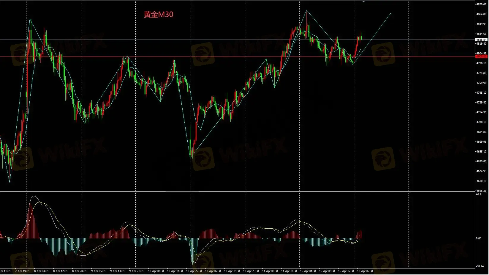 M30图表金价日内逢低买入操作,下方坚实支撑4800,只要金价维持在该价位上方运行持续看多。